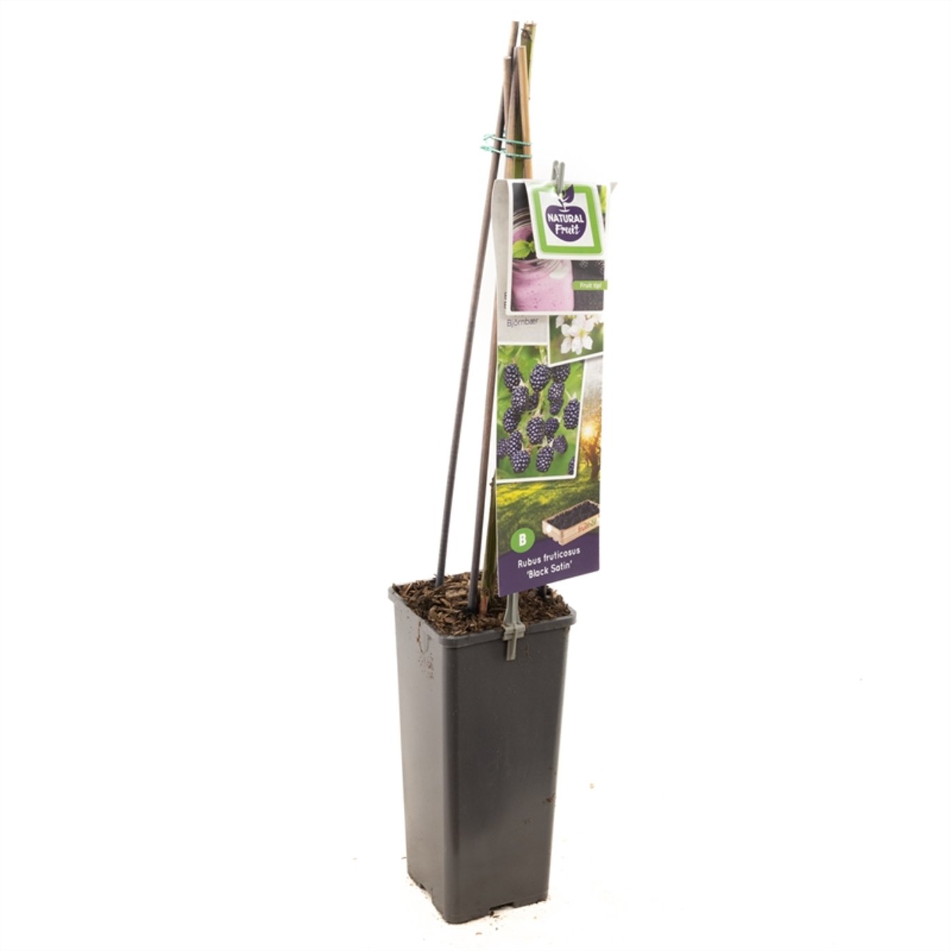 Björnbärsplantan 'Black Satin' är ett kraftigt och produktivt växtval för den växande trädgården. Den är känd för sin kraftiga tillväxt och mörka, nästan svarta bär med ett fint, glansigt skal. Den passar utmärkt i kombination med växter i odlingsbäddar eller som fencelement vid växtgränser. Den rekommenderas för plantering i soligt till halvskuggigt läge och trivs bäst i väldränerad, bördig jord.