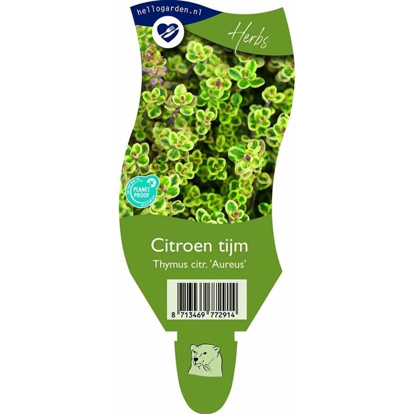 Citrontimjan är en attraktiv kryddväxt och marktäckare med smaragdgröna blad som tydligt avtecknas av gula kanter. Den har en stark citrussmak och arom som gör den idealisk för kryddväxtlådor, köksträdgårdar och aromatiska rabatter. Växten trivs i väldränerad jord och placeras i soliga lägen för bästa tillväxt och färgprakt.
