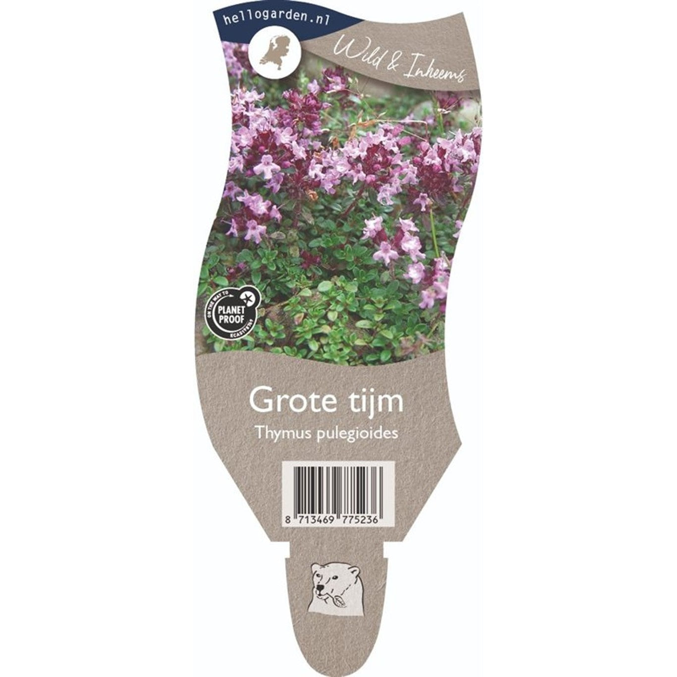 Kryddtimjan är en tålig och aromatisk marktäckande ört, känd för sina små, grågröna blad och rosa-lila blomspiror som blommar under sommarens senare månader. Den är en perenn växt som trivs i fullt solljus och väldränerad jord, vilket gör den idealisk för både perenna rabatter, stenpartier och gräsmattor. Kryddtimjan är enkel att underhålla och passar utmärkt i odlingslådor eller som kantväxt i trädgården.