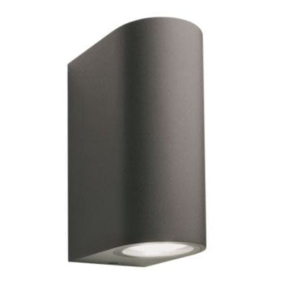 Modern vägglampa tillverkad av pulverlackerad aluminium i antracitfärg. Ljuskällan är 2 x Power LED MR16 4W GU5.3. En riktad nedåt, den andra uppåt.