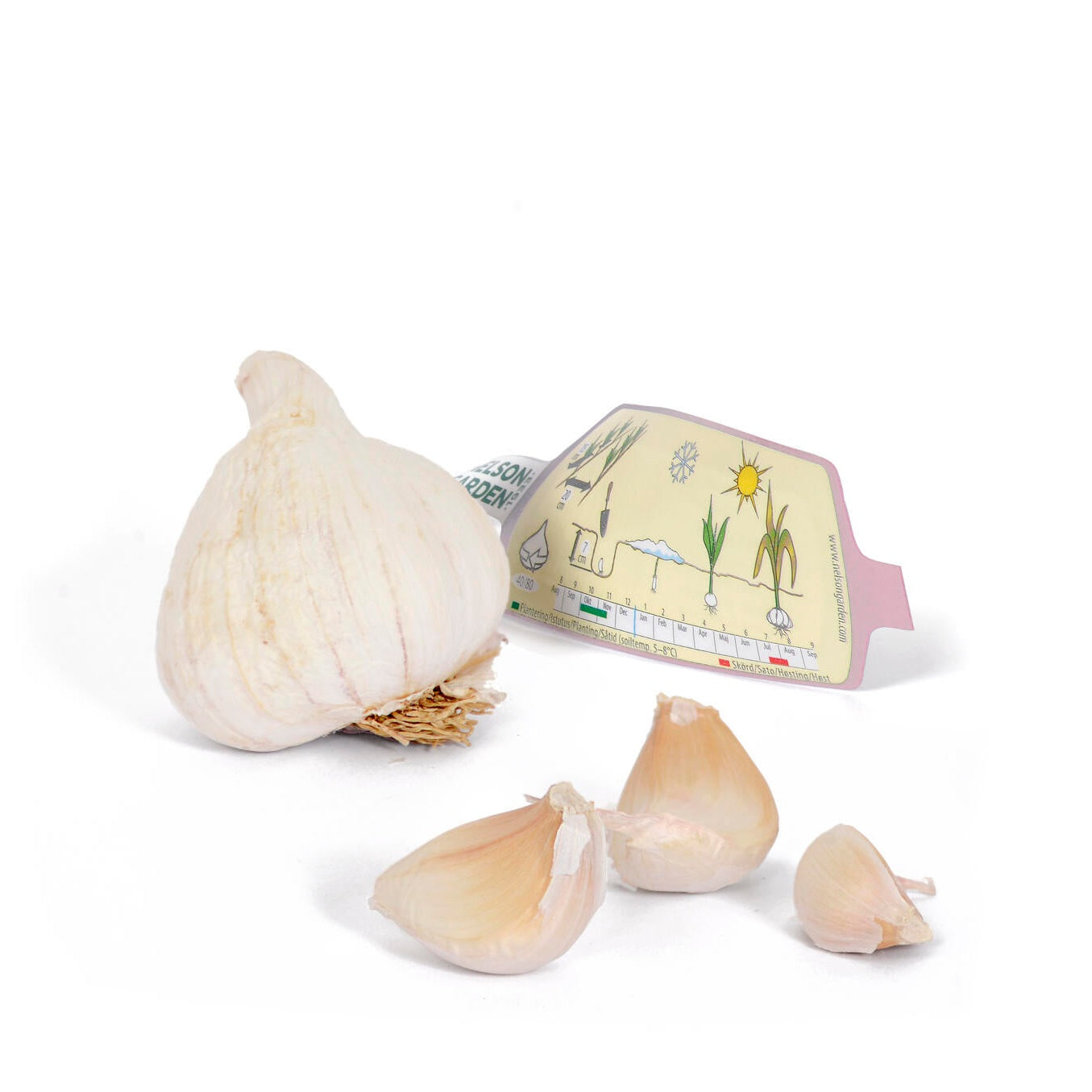 Mycket tidig sort som går att skörda färsk redan i maj och som torr lök i juni. Vitlöken är vackert vit med lila inslag som ger cirka 12 klyftor/lök. Hardneck